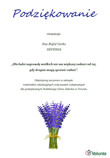 Biuro Detektywistyczne Defenda w Toruniu, zlokalizowane przy ul. Jęczmienna 22/11, to firma specjalizująca się w usługach prywatnego detektywa. Działa na terenie miasta i okolic, oferując wsparcie w delikatnych sprawach życiowych, takich jak rozwody, windykacja czy dochodzenia sądowe. Z wysoką oceną 4.8/5 w Google Maps na podstawie 26 opinii, biuro zyskuje uznanie klientów za solidne podejście do zleceń. Klienci w recenzjach często podkreślają profesjonalizm i dyskrecję usług. Chwalą szybki kontakt, indywidualne traktowanie oraz rzetelność dostarczanych informacji i raportów końcowych. Wielu wskazuje na skuteczność w rozwiązywaniu długotrwałych problemów, wytrwałość detektywów oraz ich intuicję, co pomaga w kryzysowych sytuacjach. Szczególne podziękowania kierowane są do detektywa Rafała Gerke za zaangażowanie i konkretność. Defenda wyróżnia się też dobrą komunikacją i przygotowaniem dokumentów przydatnych w sądzie. Jak piszą klienci, biuro pomaga w momentach, gdy inne metody zawodzą, dostarczając dowody na wysokim poziomie. To wybór dla tych, którzy szukają dyskretnego i efektywnego wsparcia w Toruniu. (Słowa: 198)
